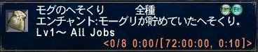 それから石の見る夢のトリガーアイテムのだいじなもの3種(バタリア、ソロムグ、ロランベリーで取れる奴)を交換して緑玉のカギをゲット。天晶堂のコッファー開けたらラムマントが出てきた。MP-7、DEX+1のゴミ。900ギルで店売りしました。