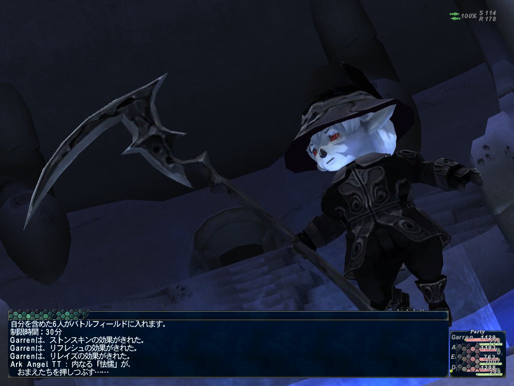 で、4人でトゥーリアに行きました。神威のクエストの所でクエストを受けた後、Ark Angel TaruTaruと戦って散るか-^^ って流れになった。