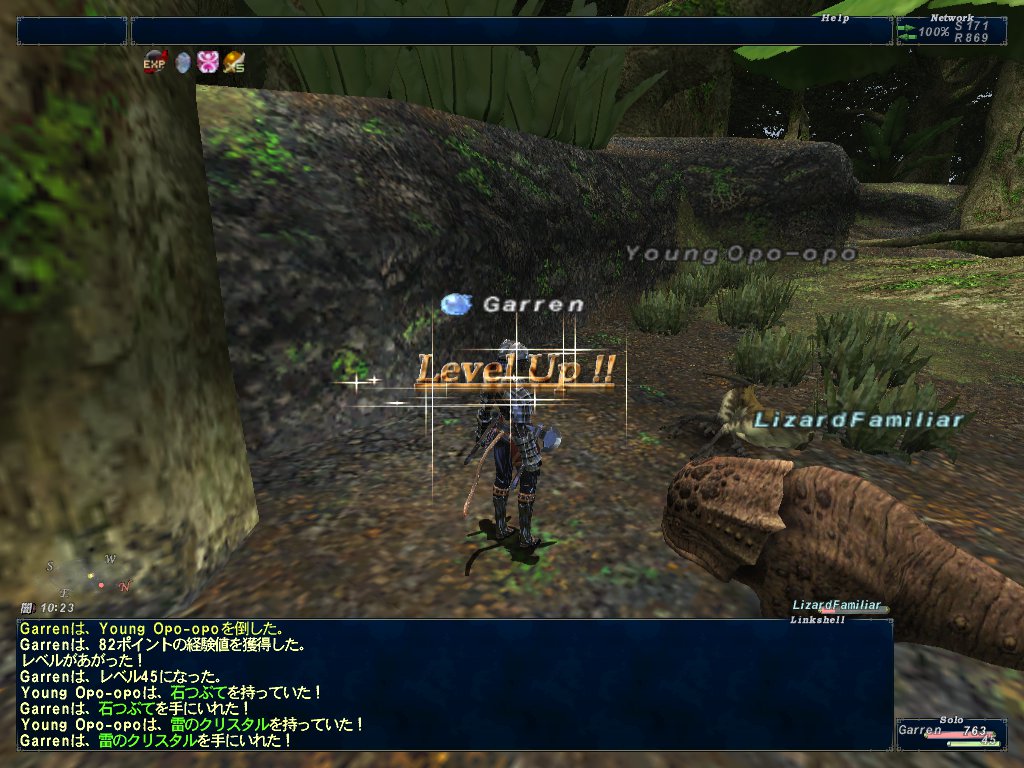 まあ、そんなこんなでトンボ数匹とトカゲ数匹消費でLv45になりました。「ひきつけろ」を使えるようになったので、オポオポのタゲを取って猛毒を食らうことも無くなった。