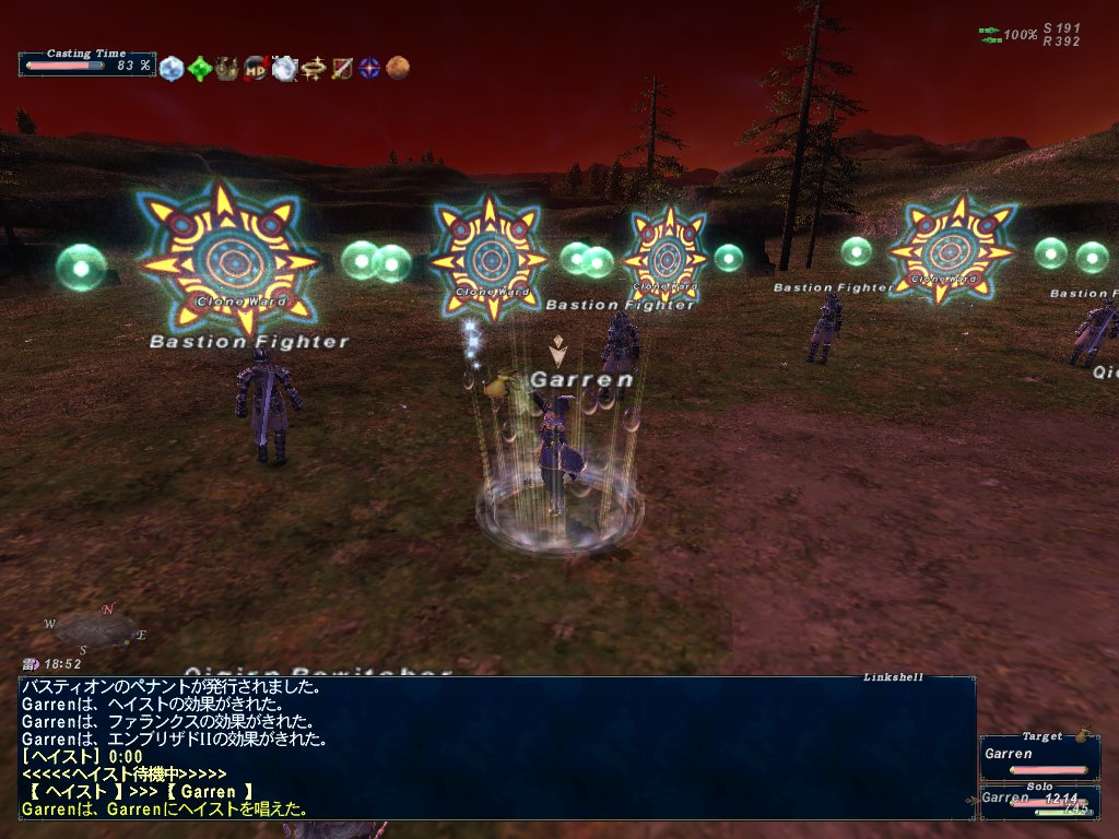 残り7分になるまでひたすらバスティオンをやってて、Lv80+経験値2000強なので、17000稼げた計算になるのかな。バスティオン開始前の風景。