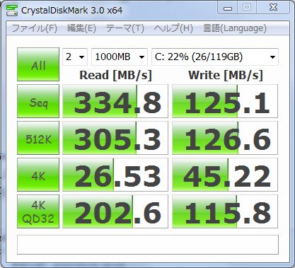 まあシーケンシャルリードが58MB/s、ランダムリード512KBが47MB/s速いからSATA3.0ポートに繋いで使うのがいいんだろう、きっと。
