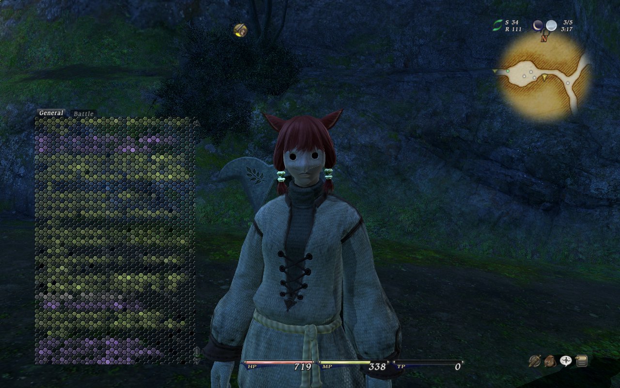 ミコッテのカウル姿はとてもダサい。しかも作って気づいたけど、ランク14~の装備だった。私はまだ幻術師ランク11…。うーん。