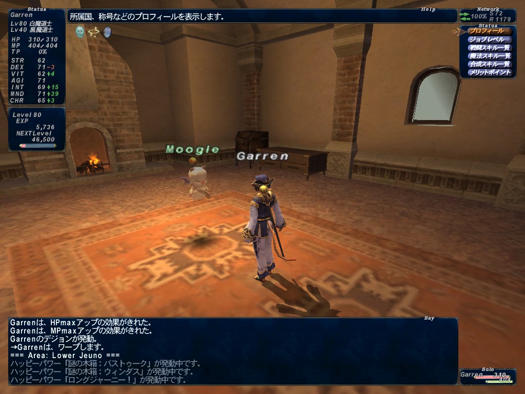 白魔道士にジョブチェンジしてバスティオンをやった。あと12000でLv80になってケアルVIを覚える予定。97分のアビセア滞在時間で残り15分くらいでLv80になった。今日はいつも居る敵のタゲを取ってマラソンしてくれる人が居なかったので陥落が早かった。