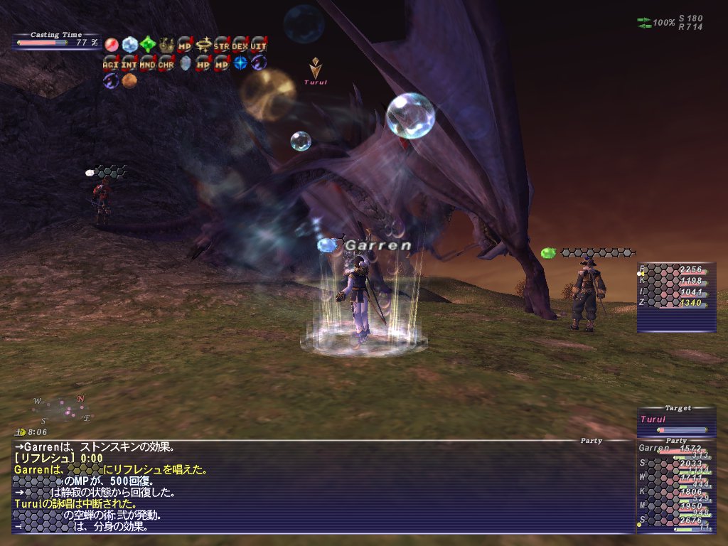 アビセア-コンシュタットに入ってTurulを探していたら、死にかけのTurulが狩られているのが発見された。すでに別PTに狩られてたっぽい。10分経過後再沸きをまって探す。さっき倒された場所周辺で再び沸いたようで、近づいて降りてこさせようとしたら別PTの人に先に反応して釣られてしまった。相手は4人PTのようで、うちのアライアンスの主催者が共闘を申し出たみたいだったけど返事が無く独占されたままTurulが倒されるのをみていたら、Turul優勢で4人PTの盾の人が死んだ。それからしばらくは耐えてたけど、4人PTは結局全滅してTurulは空に上っていった。