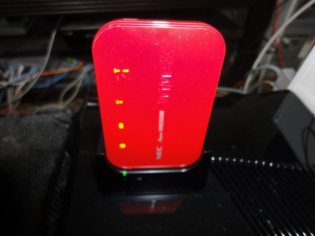 WiMAXルーターが届いたので設定してみた。デスクトップPCの有線LANケーブルを外してUSB接続でモバイルルーターを繋ぐ。設定ページにアクセスして接続契約や各種設定を行う。終わってからUSB接続のままWiMAXでインターネット接続してみる。どうも回線が不安定。電波のインジケーター3本中1本しか点灯しない。電波強度が弱って事らしい。