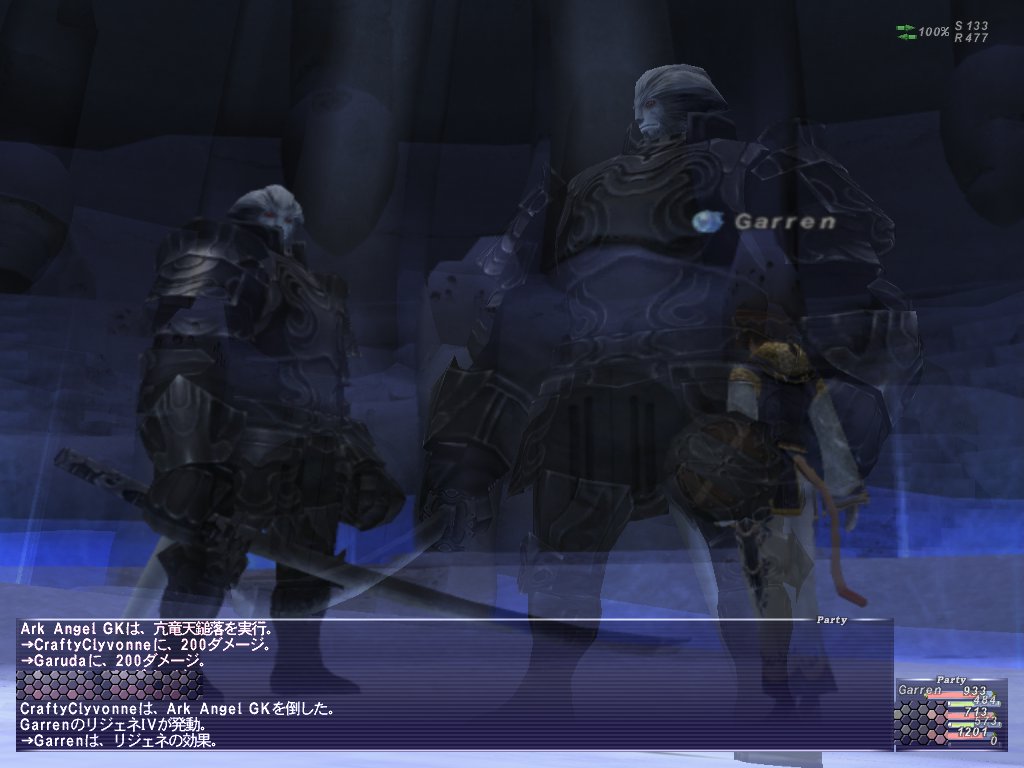 しりさんも死んで、リレイズで起きた直後に範囲攻撃で死んでリレイズ無し。オワタ。と思ったらつんたんとペットが土台+エルドナーシュを倒したっぽい!やった、これで第1形態終わった!