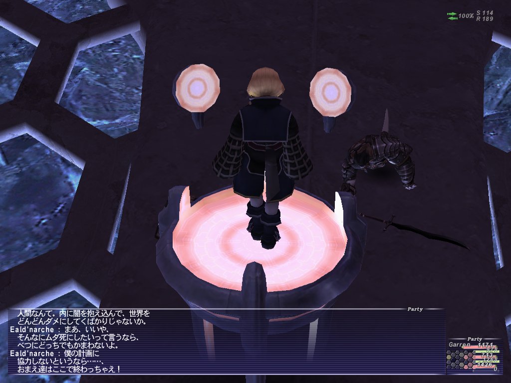 ギルガメッシュに会ってイベントを発生させたらテレポ>FoV本>OPでリ・テロアに飛んで徒歩でトゥー・リアに行く。そして道中よく分からない道を通ってボスのいるBF前まで来た。途中Lionが出てきた気がする。ああ…ジラートミッションのヒロインなんでしたっけね?