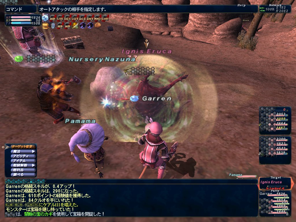 アビセア-アットワでエルカ乱獲募集ジョブ不問があったので参加してみる。からくり士Lv83でおすしを食べると攻撃が良く当たった。灰燼と牙狼のアートマを付けてそれなりには役に立ってたかな。多分。ケアルワルツIIも結構したし。