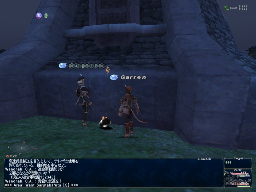 それからサポジョブを上げるべく、アルタナエリアでカンパニエopsをやる。工作任務の拠点破壊IIIだったかな。拠点破壊IVの北方は、ボスディン氷河〔S〕もザルカバード〔S〕も敵部隊が沸いてたので退散して、私の7回分のops券を使って、ウィンダスエリア周辺の獣人領で拠点破壊をやった。1回~2回爆弾設置する毎に敵部隊が沸いて移動を余儀なくされたけど、なんとか7回分終わった。