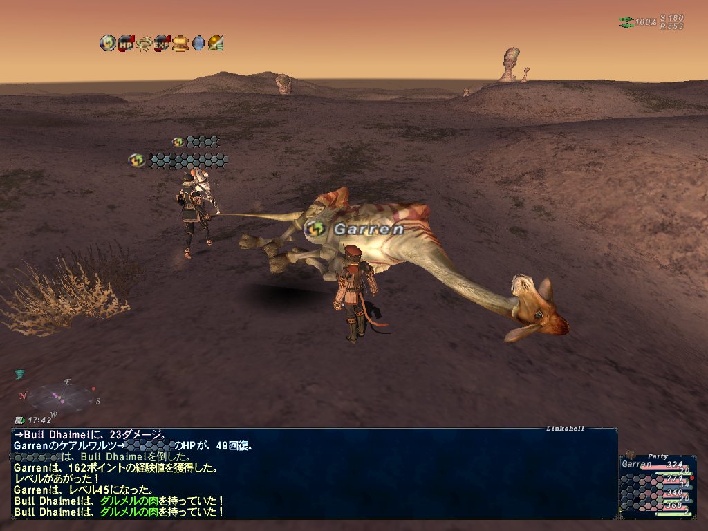 で、レベルシンクをしてサポジョブ上げを続行することになった。つんたんも合流してツンデレLv20召喚士にレベルシンクしてブブリムでダルメルと芋虫を狩るFoVを3回ほどやった。
