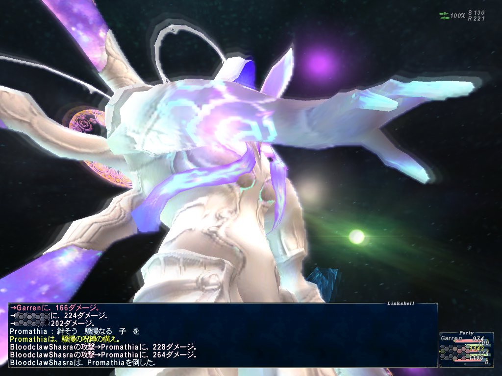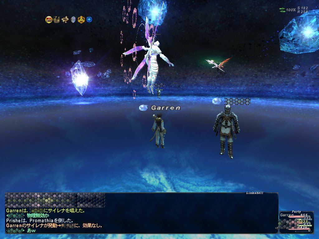 昨日の続きでプロマシアミッションをやる。アル・タユで3匹沸くアーンNM戦を3回、つんでれ、だいごろう、えりる、ぎゃれんの4人+ペットでやる。楽勝。