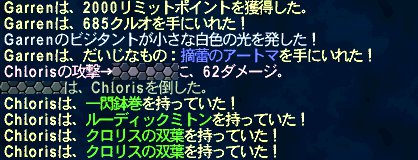 エンピ固定3人のメイン回復役の白さんも死の宣告で死んだけど、問題なくクロリス倒してた。すごいなぁ。で、摘蕾のアートマがでた。