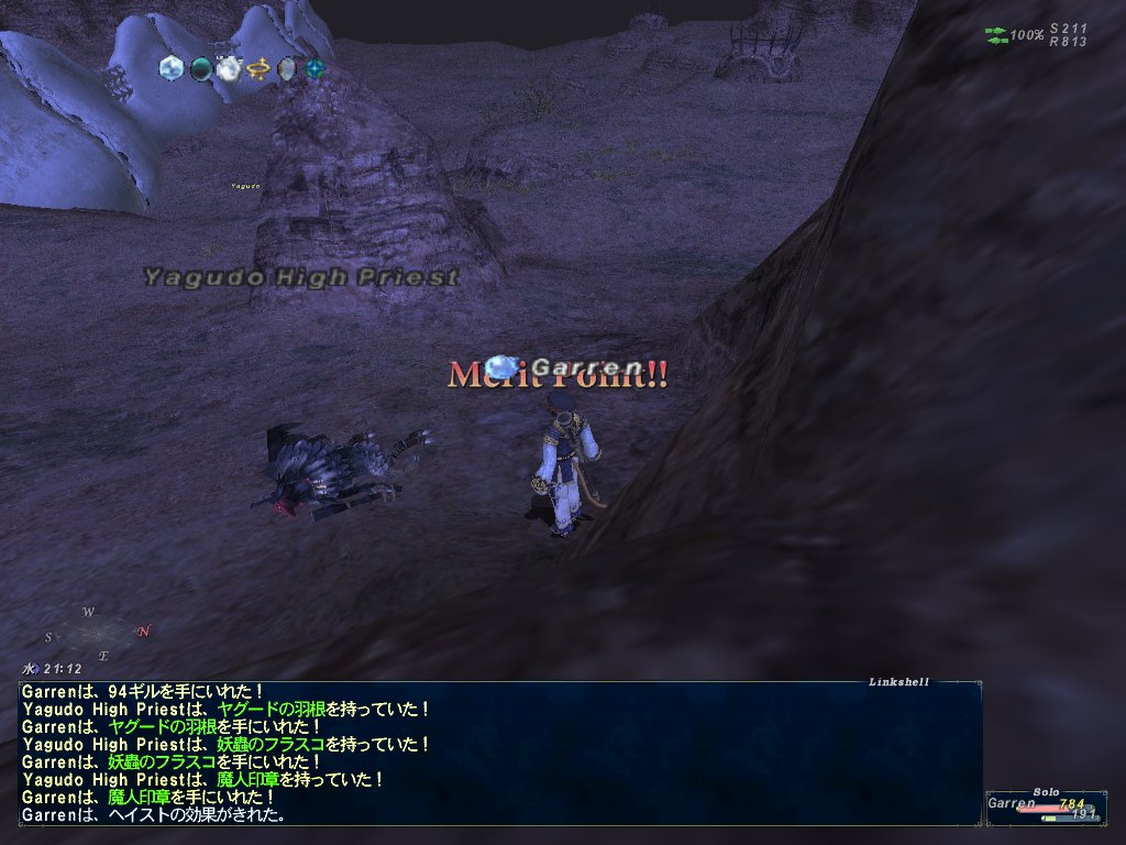 ようするに妖精を解放するのを10回繰り返せばいいらしい。妖蟲のフラスコはメリファト山地〔S〕のYagudo High Priestが高確率で落とす。ハイプリのレベルは76~80らしい。移動が楽な白/黒で挑む。