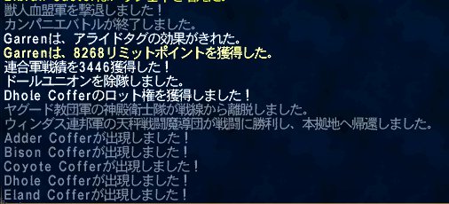 その後、勲章を維持は出来たけど叙勲できなかったカンパニエをやる。カルゴナルゴ砦で一時間半強やって、結構稼げた。