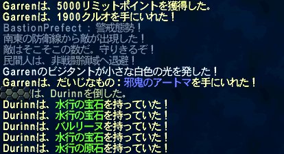 んで、せいたんのメイジャンをやろうと思ってブンカールに行こうとしたら、ぱっきーがDurinnやりたいと言うのでそっちに変更になった。なんでも五行の宝石が欲しいらしい。Durinnをやると邪鬼のアートマが取れるのでやぶさかでは無い。でもトリガー一個も無いとかちょっと。
