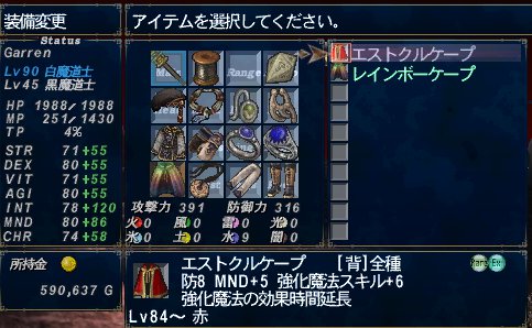 赤魔道士用のエストクルケープをもらってご満悦なのであった。