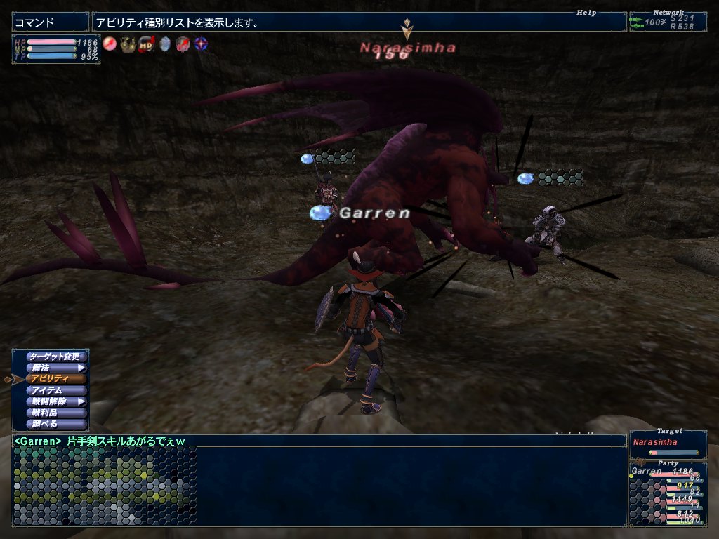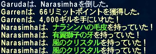 ナラシンハは合計2匹沸いた。2時間Popなんだろうか?Lv904人でも倒すのに結構時間かかるくらい強い。攻撃もなかなか痛い。