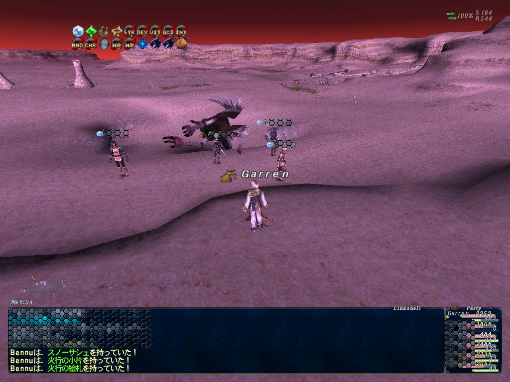 最後にぱっきーが行きたがっていたアビセア-アルテパのボスNM、ベンヌをやる。ライバルいたのでベンヌのトリガーを出すNMを狩ったら、弱点2度付きしたけどゴエティアピアス出たっていう。えりんぎさんがロット勝ち。