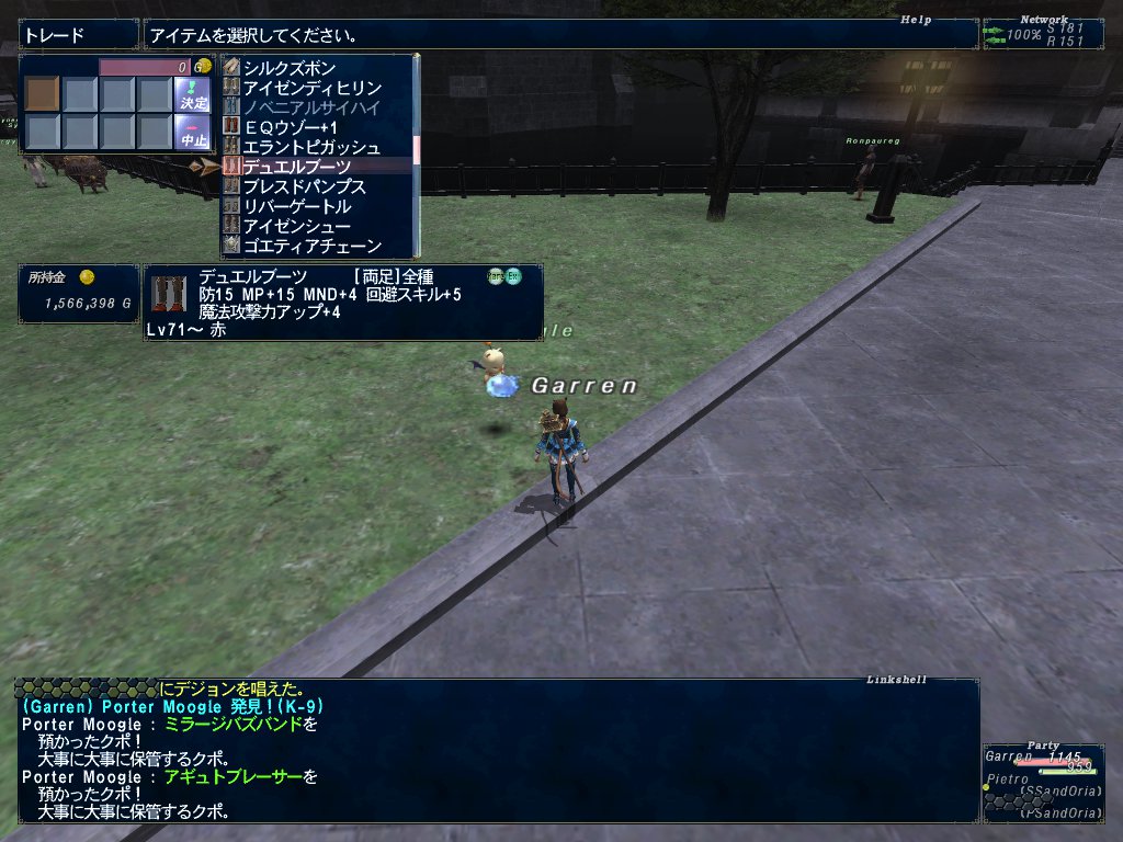 一昨日は裏サンドリアに行った。途中ヤバイ場所で戦闘不能になったけど、つんたんが囮になってくれて蘇生できた。ありがてぇありがてぇ。まあ、クリアフラグ自体は余裕でした。たぶん。で、青手、学手、赤足を手に入れたのかな。赤足が地味に嬉しい。