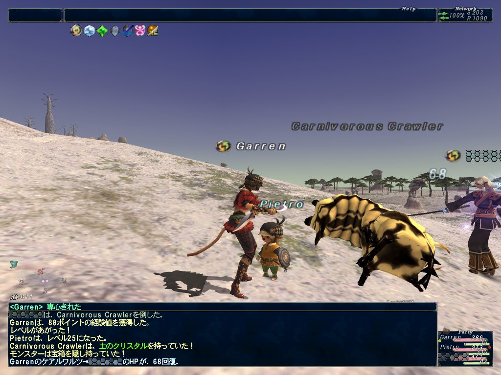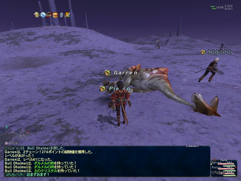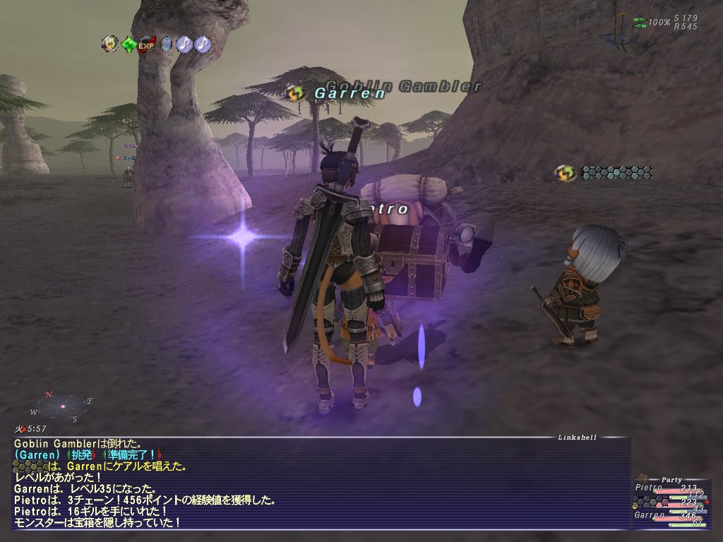 しりさんがLv25くらいになって経験値がションボリ気味になったので、ちゃーんが白魔道士Lv22にジョブチェンジしてシンクし直して狩りまくる。ちゃーんがLv24になったあたりで解散。