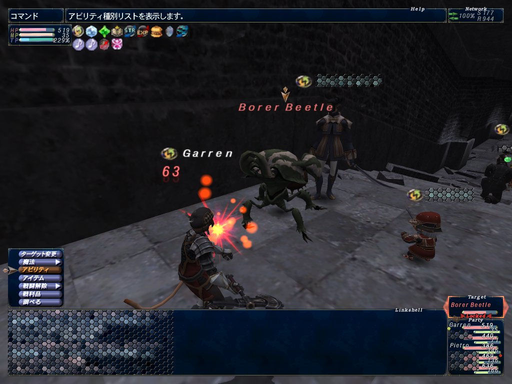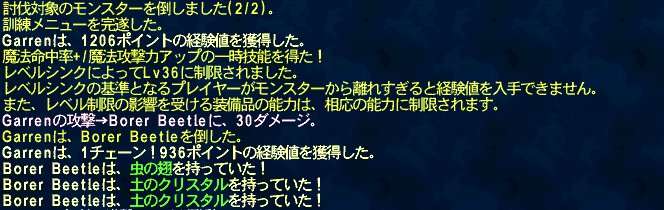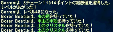 せいたんの青もLv60になってた。シンク元のつんたんのレベルが34になったあたりでまた狩り場を変える。要塞でコウモリとカブトムシを狩る。