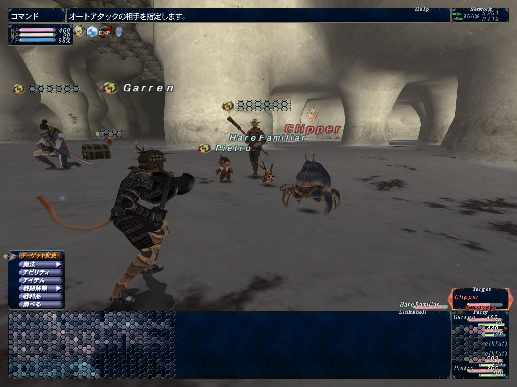 で、Lv22~23になったので、クフィムに行くことになった。クフィムの塔前とかジュノ側ガード前通路付近とか海側通路とかでカニとミミズを狩る。