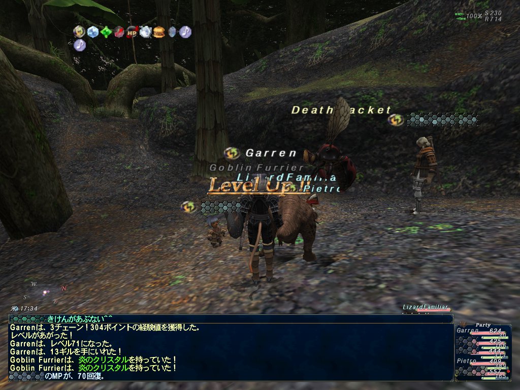 ちゃーんの倉庫キャラがLv25になったので、ちゃーんはメインキャラで白にジョブチェンジして戻ってきた。Lv25白/黒。Lv28までクフィムで狩って、それからユタンガOP付近から北上してハチとゴブリンを狩る。最終的にLv33まで上がったんだっけか。私の獣使いはLv69だったのがLv71まで上がった。とうとうバイソン装備一式を装備することが出来た。