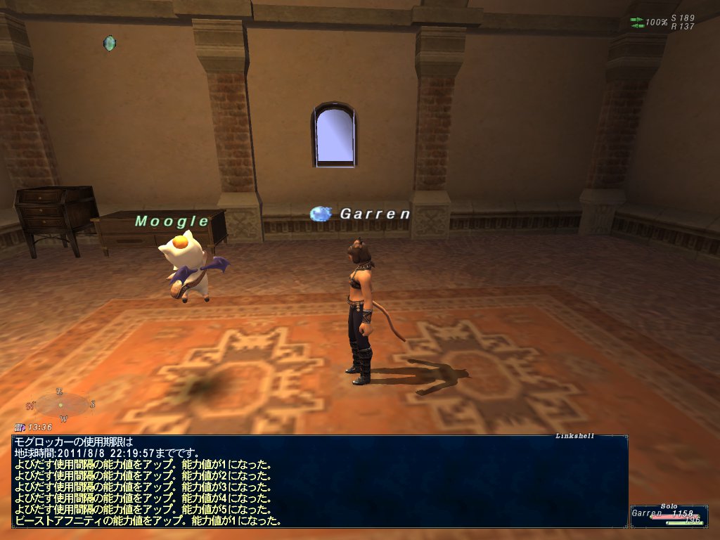 ビーストアフニティ[獣75メ]よびだしによるペットのレベル上限アップ。最高レベル90。能力1でレベル上限+2。これでラーズとかチャッキーを呼んでも77まで使える。まだ汁残ってるし!まあ76からはナズナさんの方がいいんだろうけど。