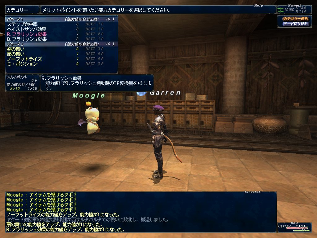 最近は踊り子のレベル上げをビシージとカンパニエでやってます。先日Lv75になったのでメリポを3項目ほど振る。R.フラリッシュと扇の舞とノーフットライズ。