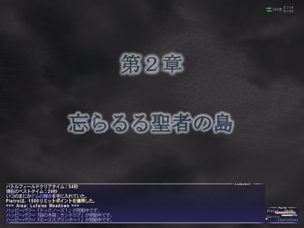 それから、プロマシアミッションをやる。3国プロミヴォンに2垢で突入してオッスオッス。まあ余裕。途中絡んできたNMが居たけどさくっと倒す。