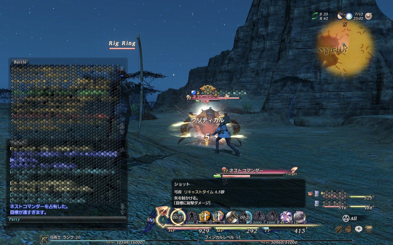 で、通常狩りでナニーとかビリーをオッスオッスしまくって、弓術士ランク22まで上がった。イヴさんは幻術20になってた!ぱっきーは格闘23かな。ランク25になったらトトラクの千獄か…。その前にメインクエスト進めるか。