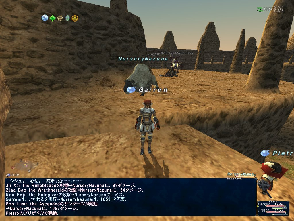 しりさんの調理スキル上げをヘルプしたときに貰ったアルタナムルスム8本。これだけあればきっと獣使いソロでも即身成神討伐に勝利出来ると疑わなかった。ソロで勝利した人のブログを見ると、ペットエータ7つとアルタナムルスム4本で勝利とある。戦闘時間12分強だそうだ。ムルスム1本でペットの体力2500前後回復するようなので、8本あれば余裕だろ!念のためいつも使っているペットゼータではなく競売でダース5万ギルのペットエータを1D買う。