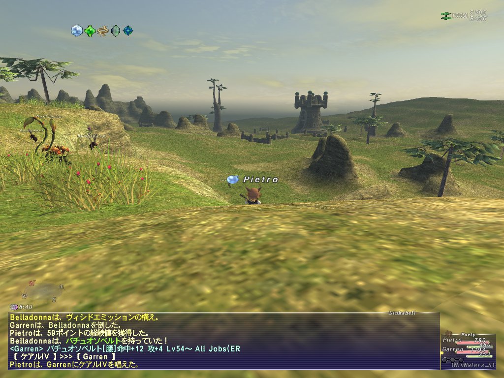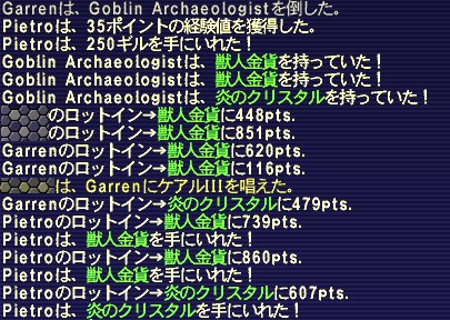 先に帰ったつんたんとしりさんがGarrenを乗せてテレポで戻ってきて、ゴブリンNMと戦闘。榴弾投げが痛かったけどなんとか勝利。