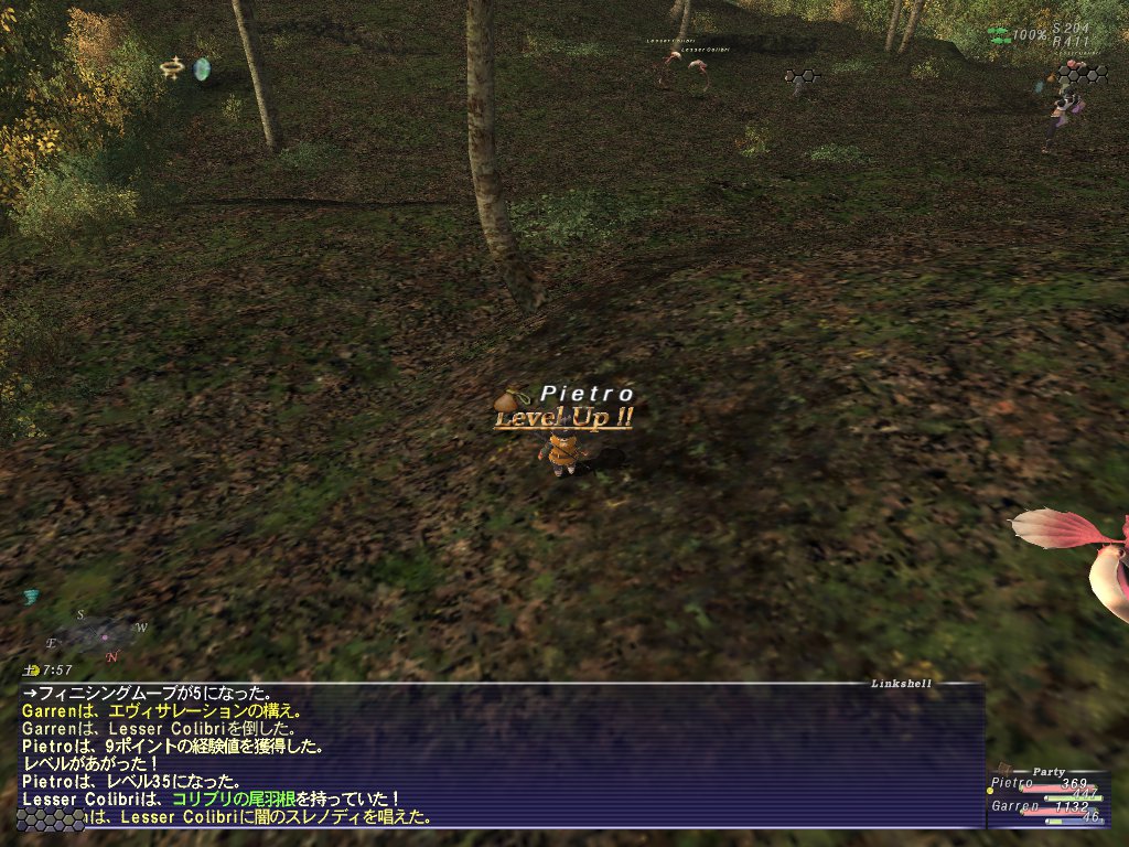 夕食後の20:30頃にマムージャのビシージが来たので適度にこなす。つんたんが@1でレベルアップだそうなので、ワジャーム樹林に出てコリブリをつつく。