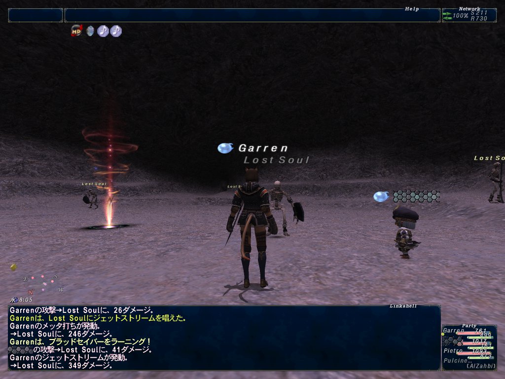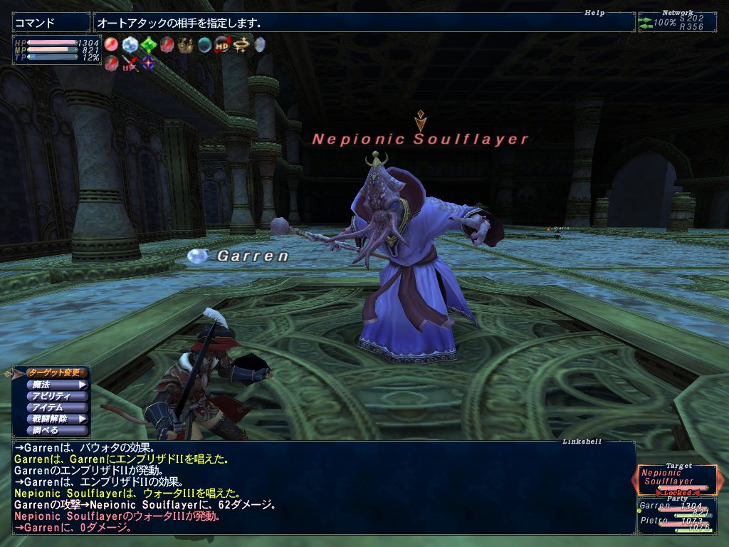 ついでに、AFクエ3のNMソウルフレア戦もやってみる。赤Lv92だし余裕だろう。一応マインドブラスト対策のパラナ要員としてピエトロを連れて行く。