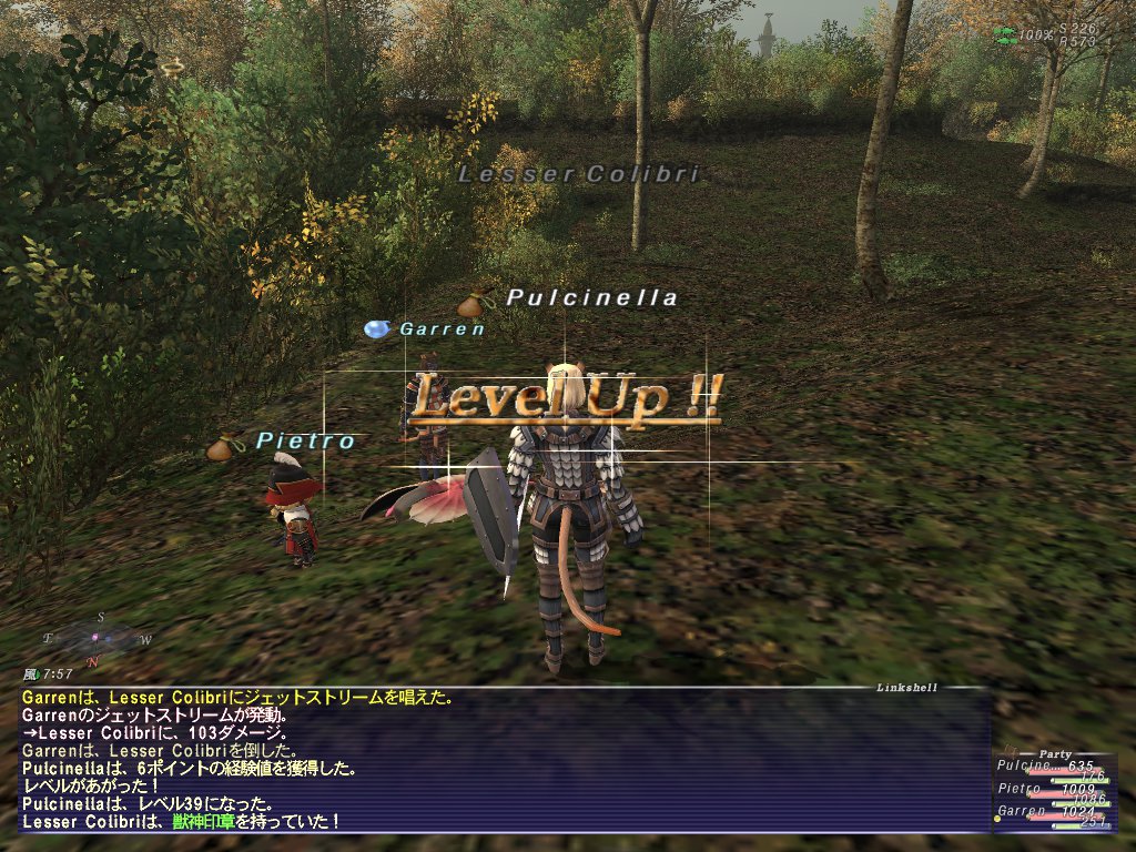 今朝、ビシージが来たので3キャラで参戦。青Lv57になった。PulcinellaはナイトLv39まで@1だったので外のコリブリを倒してLv39にした。