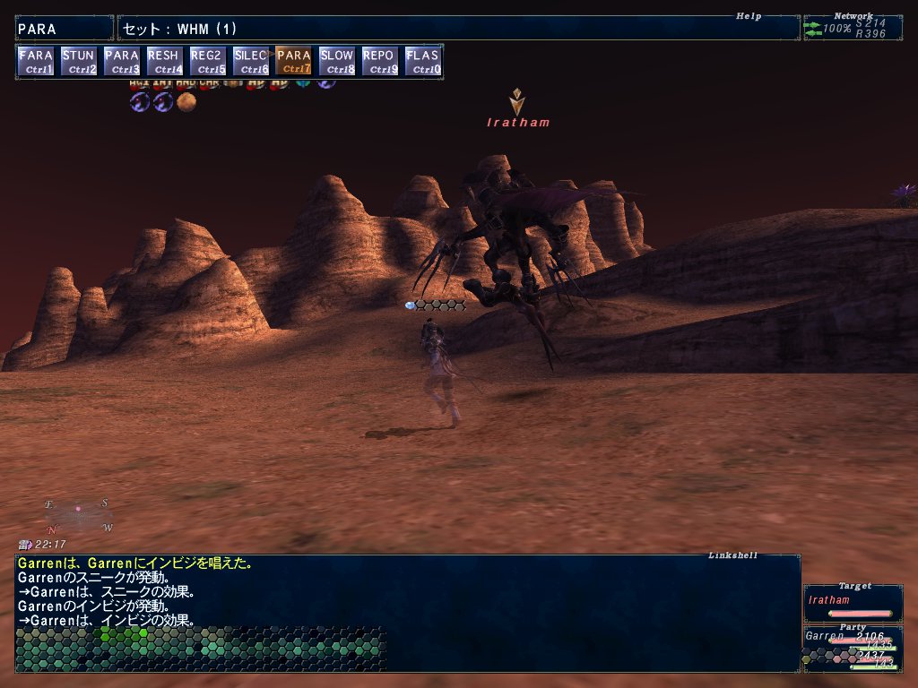 せいたんがイラタム行こうぜって言ってたので行く。アビセア-タロンギの強いカトゥラエ族NM。何でも踊り子ソロで惜しいところまで減らして5回ほど負けたらしい。せい(踊り子)+ぎゃれん(白)でオッスオッスしたらお目当てのアイテムドロップしたっぽい。青弱点は…両手棍のWSだった(種類失念)のでちゃんとついたよ!TPはイラタム殴って貯めたけどw