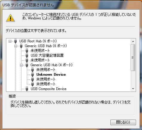 先日からどうもUSB関連のエラーが出る。