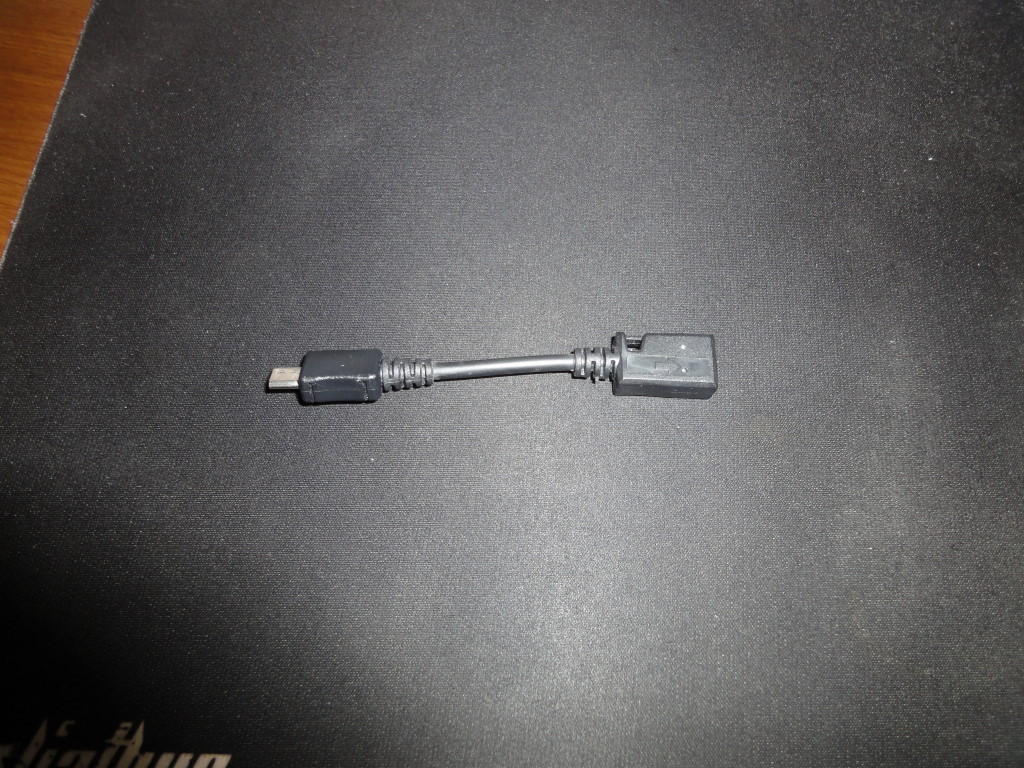 miniUSBをmicroUSBに変換するケーブル。そういえば前にMEDIAS N-04CをPCに接続したときも、このケーブルを使ってエラーが出たな。このケーブル。7又のUSB充電用ケーブルに付属してた奴です。安かろう悪かろう…。7又ケーブル本体自体もiPod Touchの充電はできるみたいだけど、PCでの認識やデータ転送でエラーが出るし。
