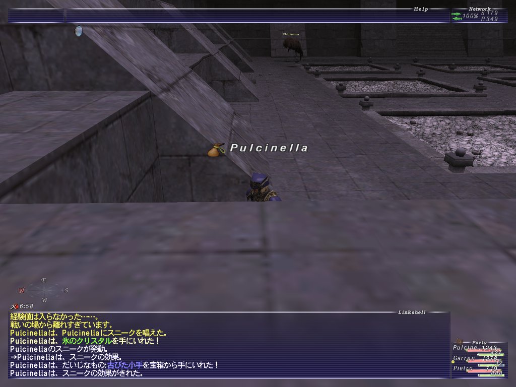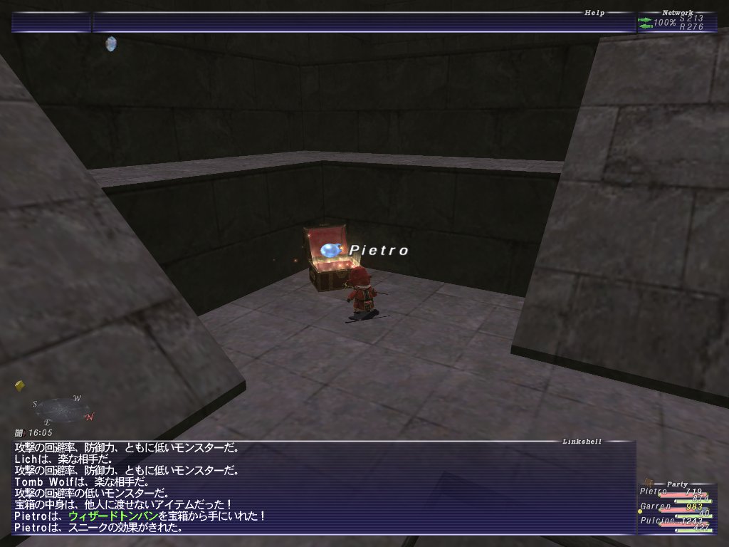 次はサンドリアからウィンダスに移籍したえりんぎさんのウィンダスミッションをやった。6ー2の聖者の招待。作戦無しで突っ込んで勝利。裁きのカギがなかなか出なかったくらいで、特に問題なし。次の第6の院も、スライムNM4体をナズナでオッスオッスして楽勝。そんな感じで昨日のぽこたうんは終了したのであった。
