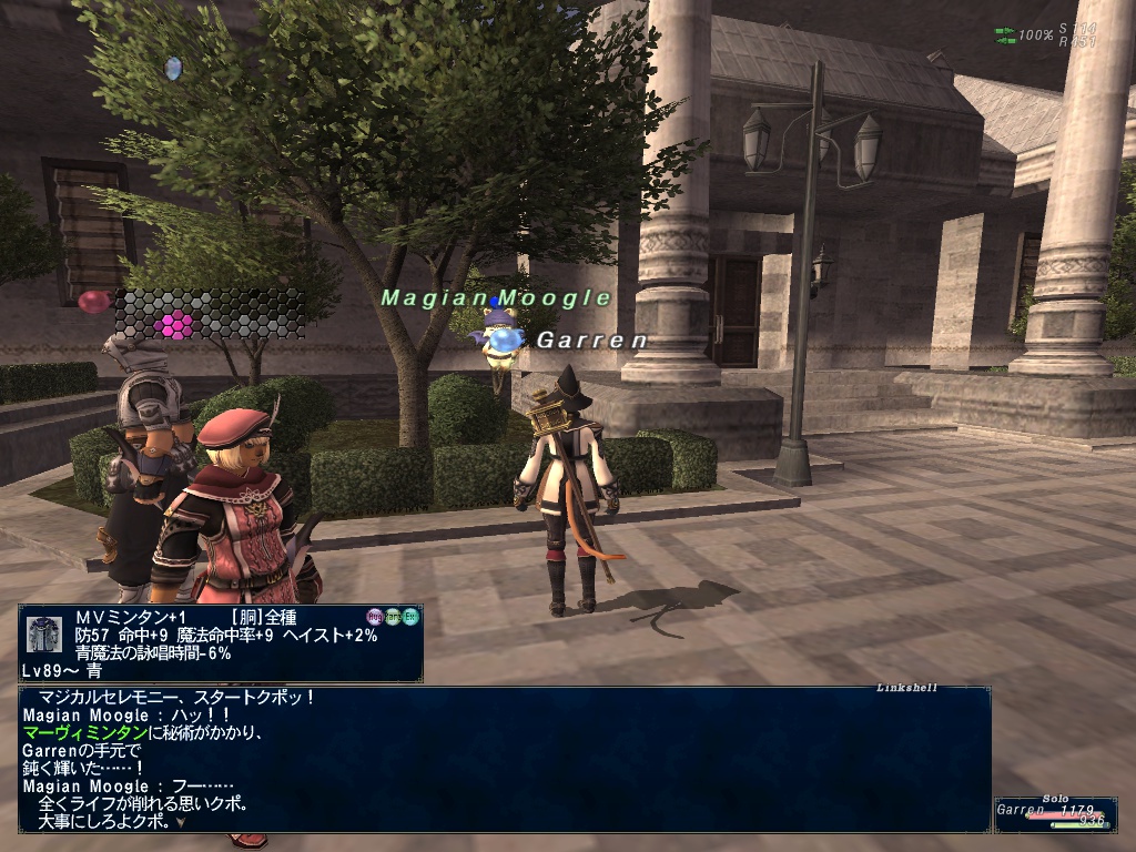 早速メイジャンで強化するため、アビセア-グロウベルグでマーヴィミンタンを交換してくる。それをル・ルデの庭で強化してMVミンタン+1の完成である。まだ青Lv76だけど。
