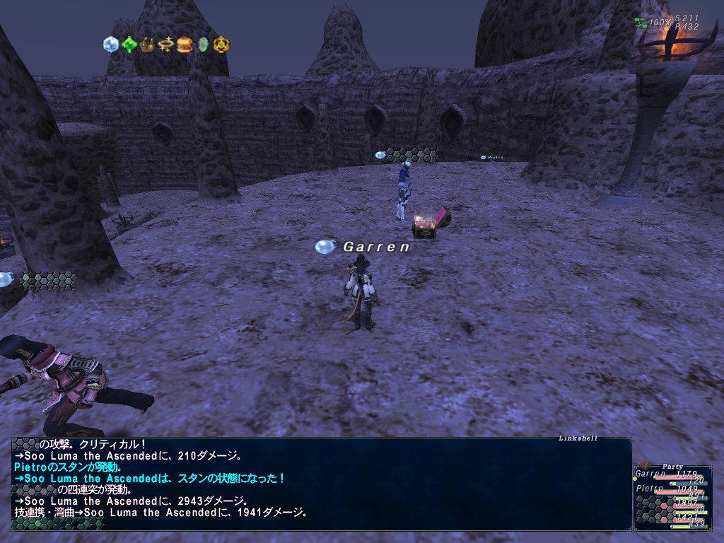 作戦は、ギャレンが開幕スリプガIIで寝かす>ソー・ルマをフルボッコ。精霊魔法はせいたんがスタン青魔法で止める。えりんぎさんはひたすら殴り、ぴえとろはマスコット。そんなかんじ。2戦してピアス2個出るとかまじ運がいい。