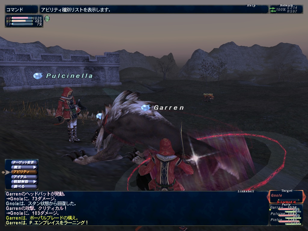P.エンブレイスをおぼえに行った。場所はバタリア丘陵〔S〕で相手はノール。ピエトロもついでに片手棍のスキル上げをする。