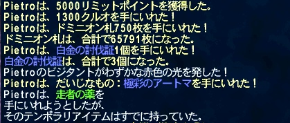 そういえば戦闘中にsayでクリアフラグが欲しい目的の赤タルちゃんが定型文で話しかけてきた。アラに入れて討伐完了。赤タルちゃんはお礼を言って去って行った。