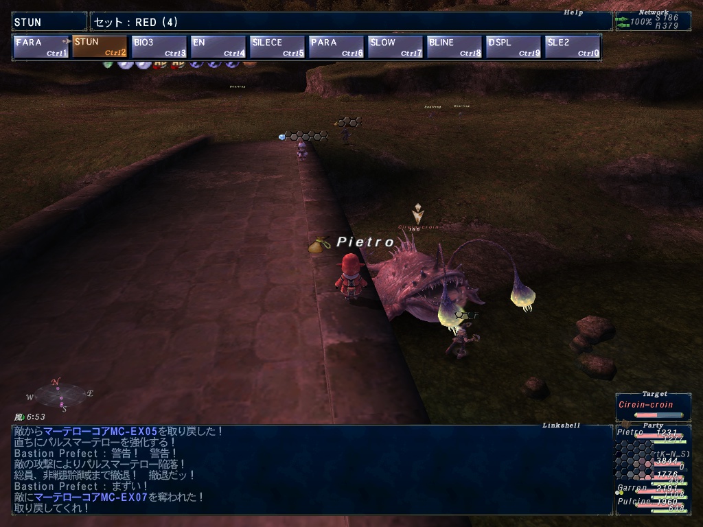 しりさんの黒脚型紙が@1枚だというのでアプカルNMをやりに行く。ぴえとろは黒で弱点要員。ぎゃれんも青で弱点要員。ぷるちねっらはナイトで経験値をもらう要員。うまー^^