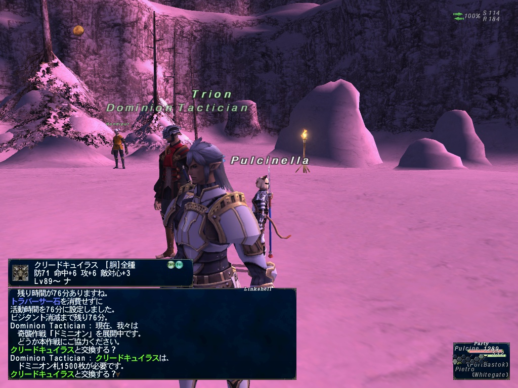 で、アビセア-ウルガランに行ってドミニオン札1500枚と交換でクリードキュイラスをもらってきた。