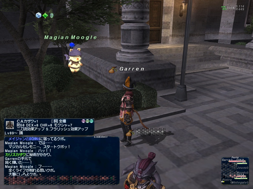 それから、アビセア-アルテパのケルベロスを5~6戦やって、踊り子胴型紙が10枚揃ったぞ!しりさん希望のナイト型紙は1枚も出ず、ぽちっこ希望の黒胴型紙はあと2枚まで来たそうだ。