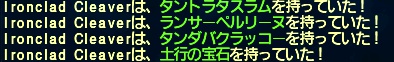 火タイパンは火天候/火曜日:なんでも50匹だったけどイフリートの釜が火天候にならなかったので、火曜日にアビセア-アルテパでスミロドンをアートマつけてモリモリかる。でも…なんというか…連環六合圏の無いからくりは強くないすなぁ。