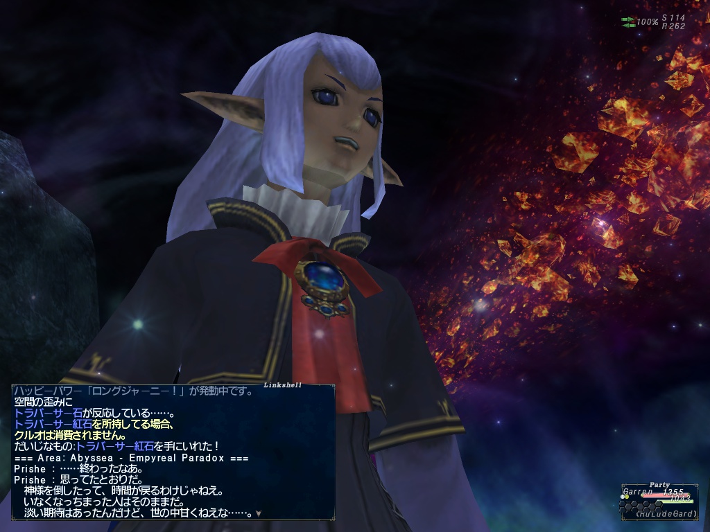 これで全員審判のジェイドをゲット出来たはず。で、神々の間でイベント待ちのメンバー以外6人で神竜に行ってきた。弱点がなかなか突けずに苦労したけど、何とか青弱点の両手棍WSをついて勝利。トワイライトプリスが出たのでもらったペロペロ。