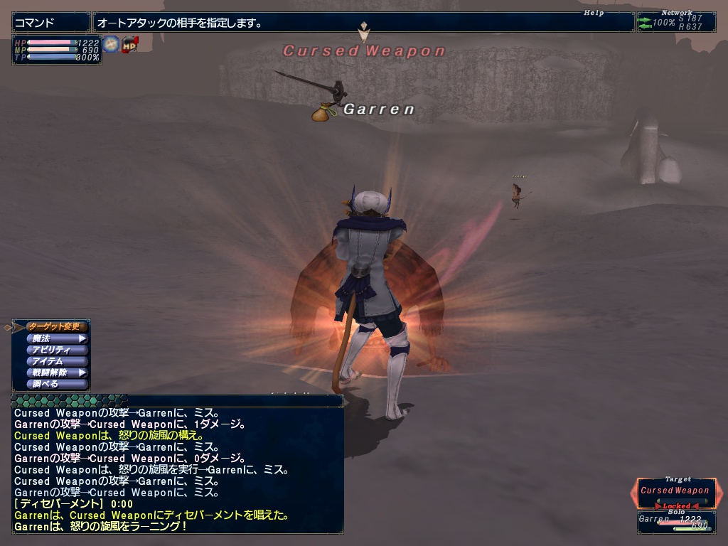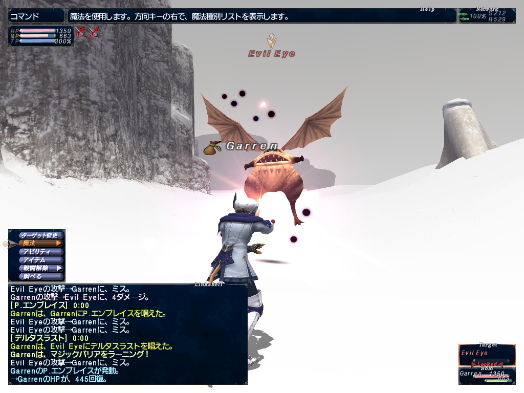 リービンウィンドをおぼえにボスディン氷河〔S〕に行ったけど、アンフィプテレを確認できなかったのでザルカバード〔S〕に移動。こっちはカンパニエNPC付近で確認できたけど降りてこなかったので、ズヴァール城〔S〕前まで行って上空を飛んでる奴に反応されて戦闘開始。なんとか6回目のWSがリービンウィンドだったので即倒す。